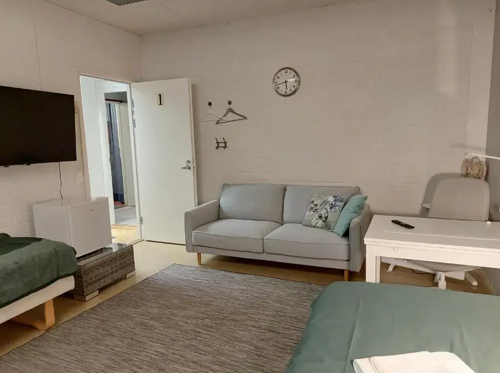 Hébergement confortable: Wera à Porvoo offre une expérience de lit et petit-déjeuner avec un sauna, un jardin, une terrasse et un wifi gratuit. Un parking privé gratuit sur place est disponible pour les clients. Amérités modernes: La propriété dispose d'un thé et d'une cafetière, d'une vue sur le jardin, d'un sèche-cheveux, d'un unité de rez-de-chaussée, d'un bureau de travail, d'articles de toilette gratuits, de télévision, de canapé et de bouilloire électrique. Les équipements supplémentaires comprennent un réfrigérateur et une garde-robe. Emplacement pratique: Situé à 28 mi de l'aéroport d'Helsinki-Vantaa, Wera est proche d'Helsinki Halli (29 mi), du stade olympique d'Helsinki (30 mi) et de la gare centrale d'Helsinki (30 mi). La gare routière de Porvoo est à 2,4 mi de distance.